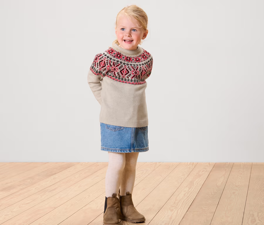 - Kremowy z czerwono-czarnym norweskim wzorem