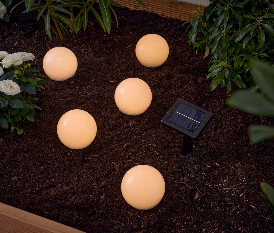 Solarny łańcuch świetlny do umieszczenia przy ziemi, 5 lampek
