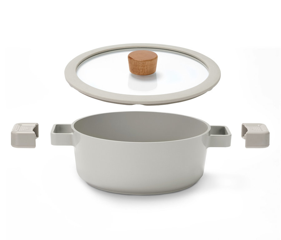Garnek ze szklaną pokrywką umożliwia gotowanie na najwyższym poziomie. Garnek w stylu rustykalnym nadaje się do użytku na wszystkich rodzajach kuchenek, z wyjątkiem indukcyjnych. Pokrywka wyposażona jest w silikonowy brzeg, który zapewnia odporność na uderzenia, tłumi stukanie o garnek i chroni powierzchnie płyt grzewczych podczas odkładania na nich garnka. Garnek ma również dodatkowe osłonki silikonowe na uchwyty.