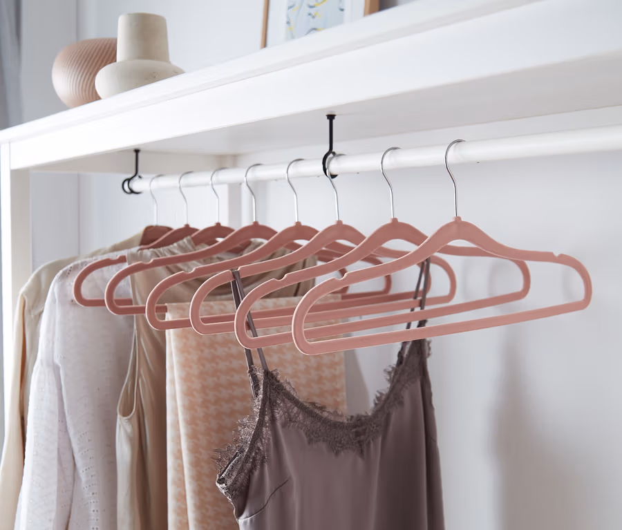 Wyjątkowo wąskie wieszaki na ubrania, 8 sztuk, pudrowe