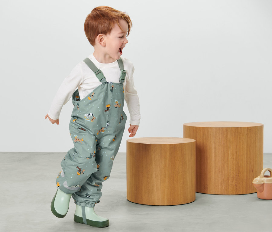 Dziecięce termoaktywne spodnie przeciwdeszczowe, z motywem psów