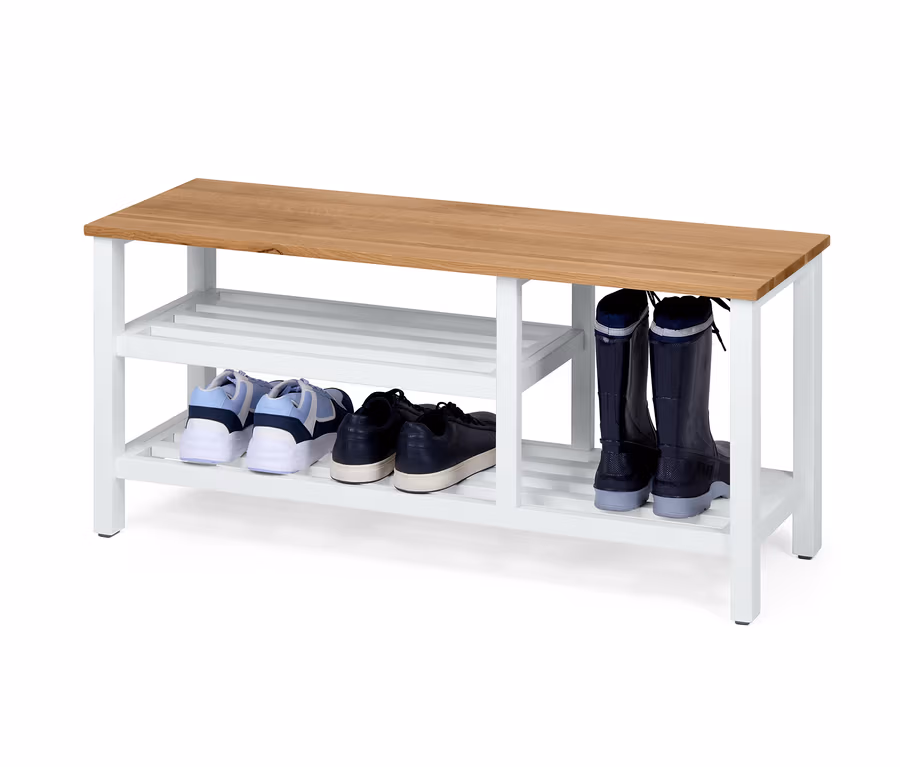 Otwarta ławka z półką na buty, z drewna posiadającego certyfikat FSC®