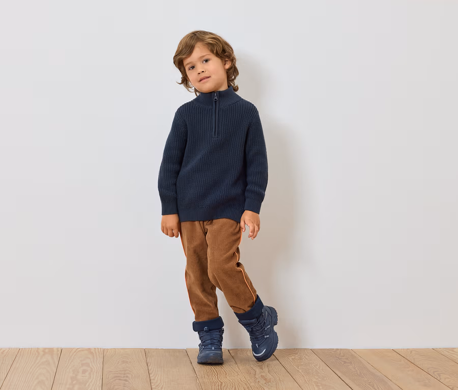 Dziecięce sztruksowe spodnie na gumce, z podszewką