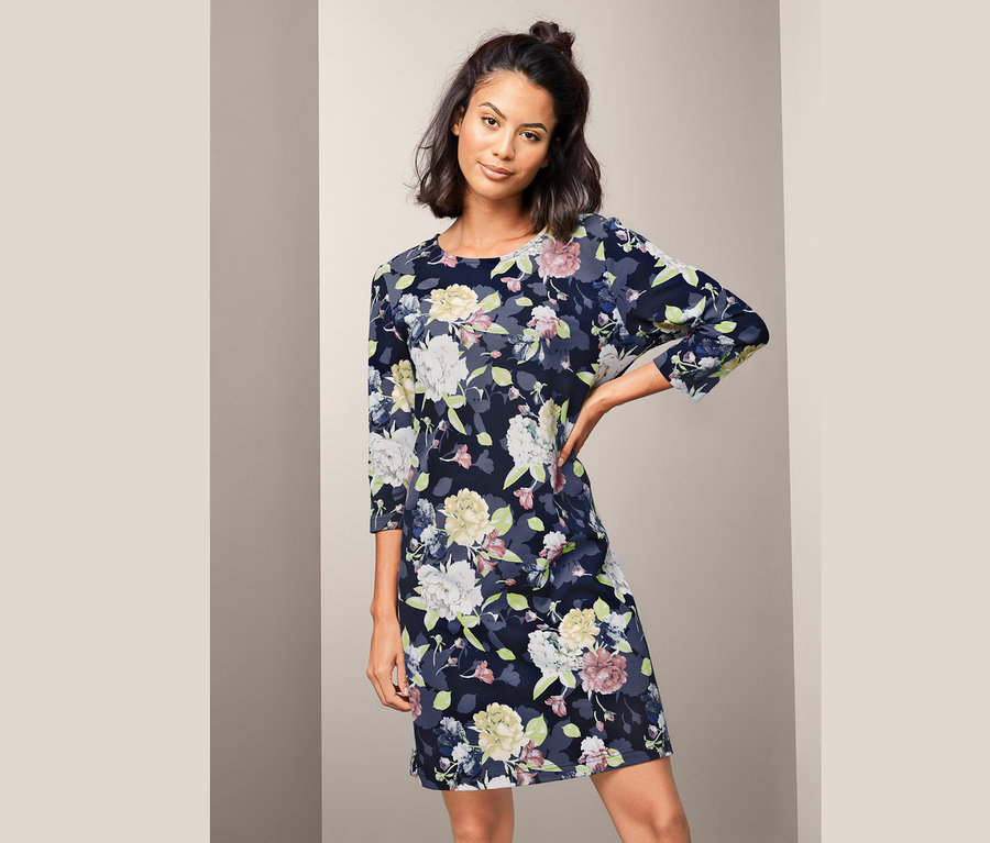 - Z wielobarwnym, kwiatowym nadrukiem na całej powierzchni