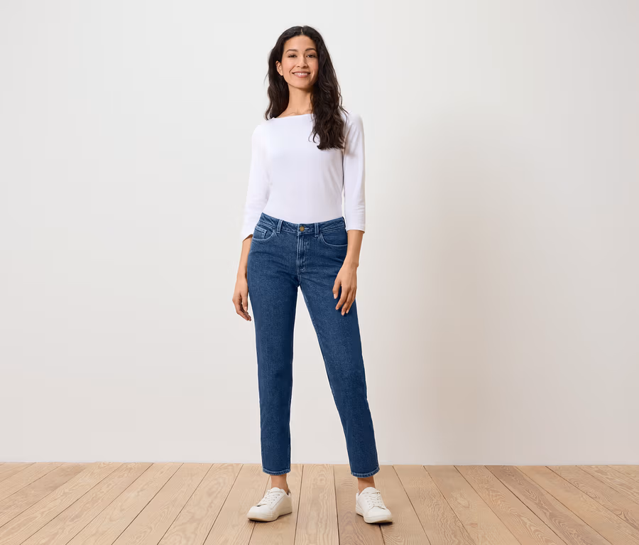 Spodnie dżinsowe o kroju modern – fason „Ava”, mid blue denim