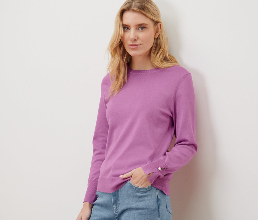 - Ten sweter zawiera włókna z drewna pochodzącego ze zrównoważonej gospodarki leśnej.