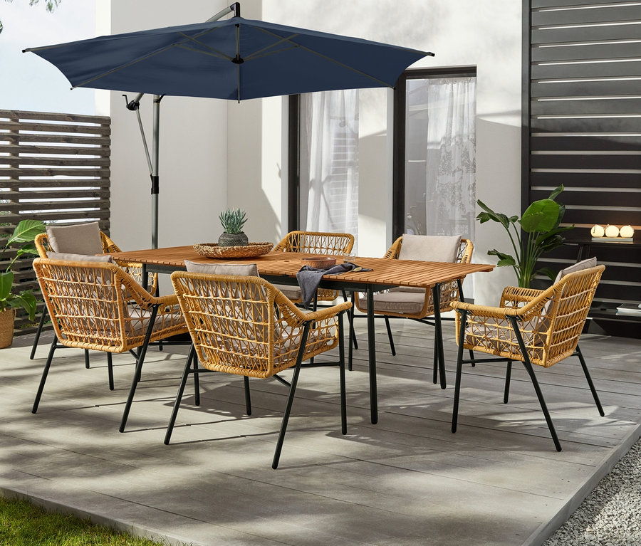 - Łatwa w pielęgnacji i trwała plecionka polirattanowa – gęsto pleciona