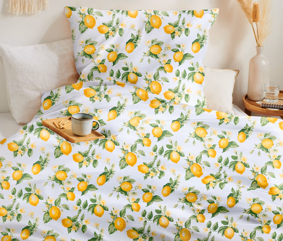 - 1 strona biała z akwarelowym wzorem w cytryny na całej powierzchni, 1 strona biała