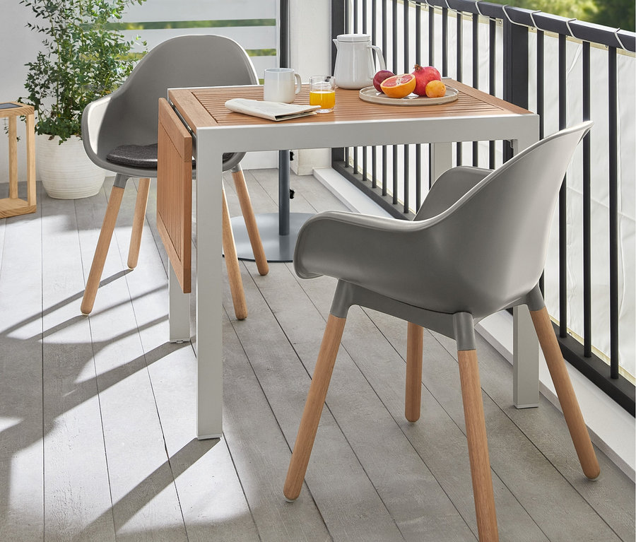 - Nogi z drewna eukaliptusowego z certyfikatem FSC® stylizowanego na drewno tekowe, lakierowanego