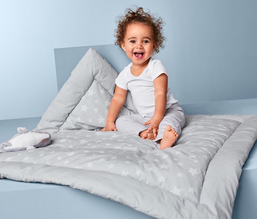 Najlepsza podstawa do zabawy i radości! Z tym wyściełanym, nadającym się do prania w pralce, kocykiem do raczkowania, najmłodsi doświadczają największej przyjemności. W końcu koc dla niemowląt o wymiarach ok. 100 x 100 cm oferuje dużo miejsca. A dzięki miękkiej wyściółce i materiałowi zewnętrznemu wykonanemu z przyjaznej dla skóry, czystej bawełny, czołganie, leżenie i przytulanie jest szczególnie przyjemne.