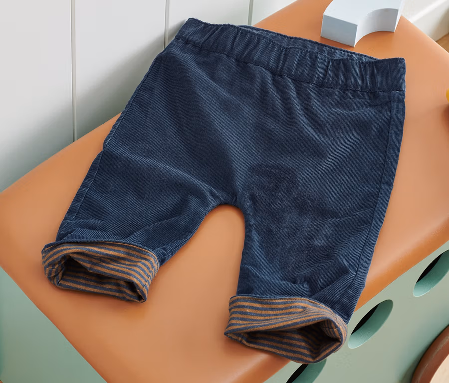 - Dwustronne: wywijane nogawki w kontrastowym kolorze