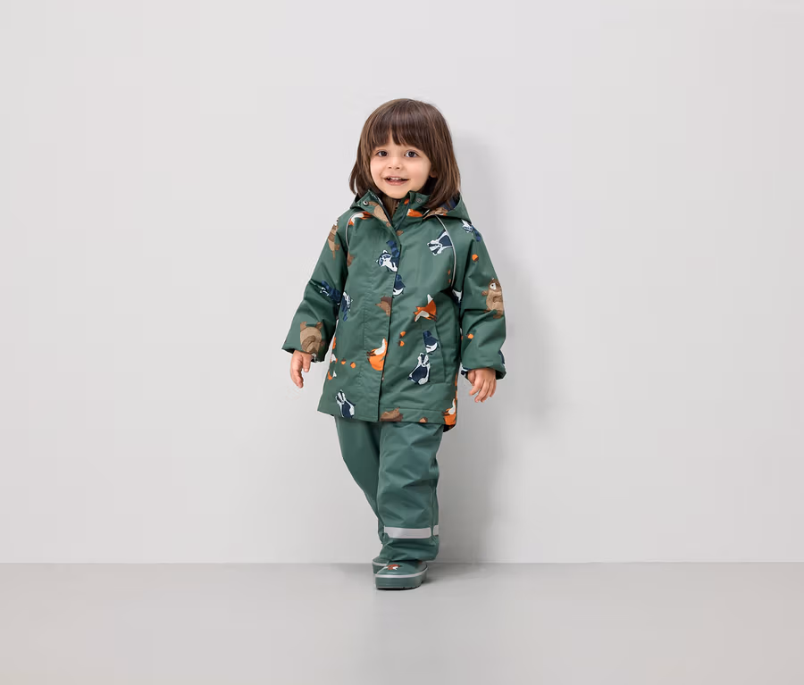 Termoaktywna, przeciwdeszczowa kurtka dziecięca z podszewką z polaru, zwierzęta leśne
