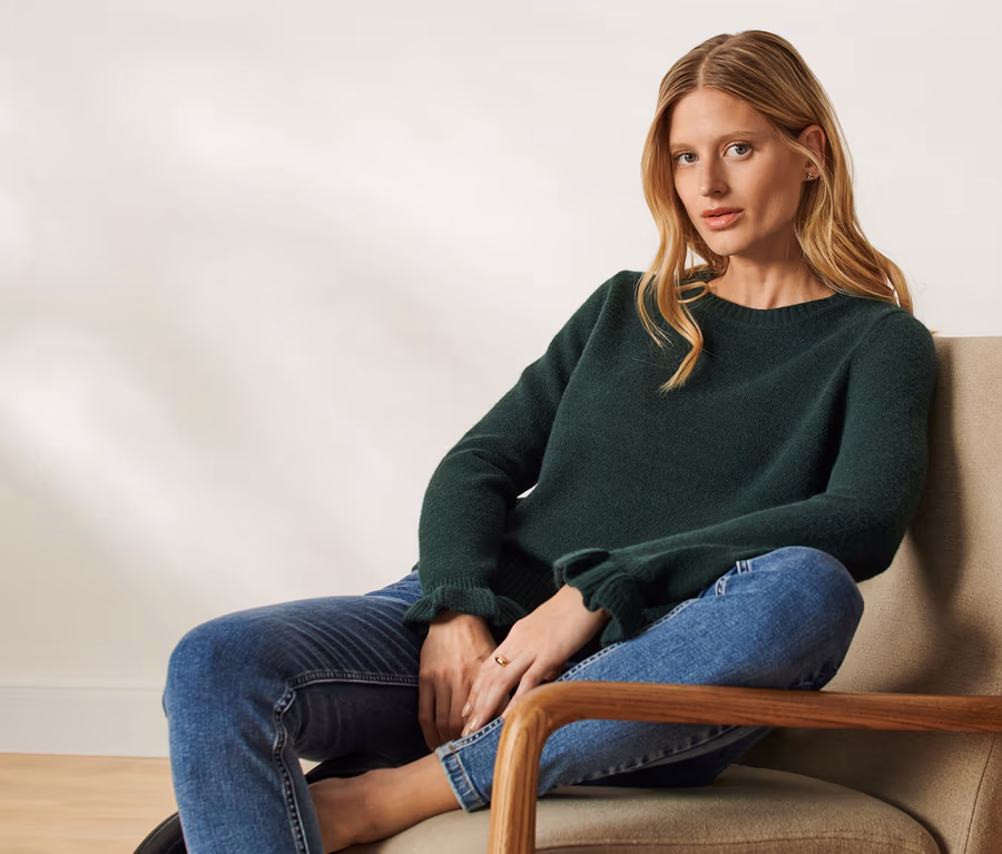 Sweter z falbanką, ciemnozielony