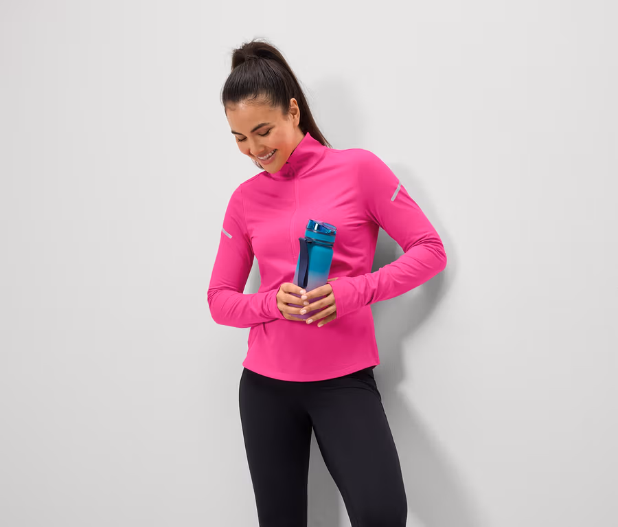 - Oddychająca, odprowadzająca wilgoć z powierzchni ciała i szybkoschnąca dzięki powłoce DryActive Plus