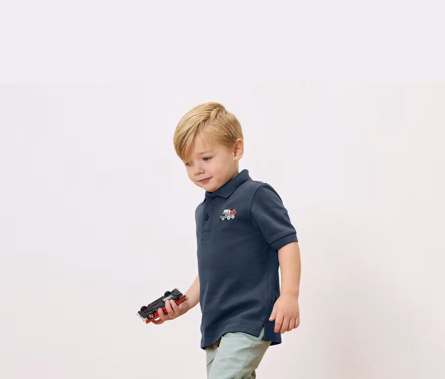 - Kołnierzyk polo i prążkowane zakończenia rękawów