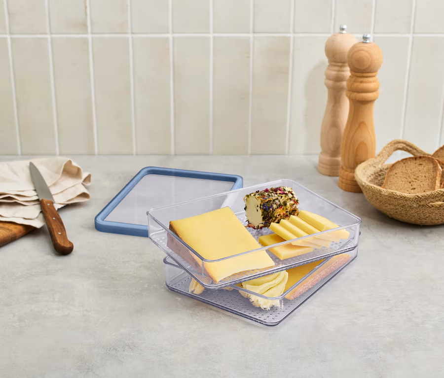 • Dwie przegródki do praktycznego przechowywania wędlin i serów w lodówce