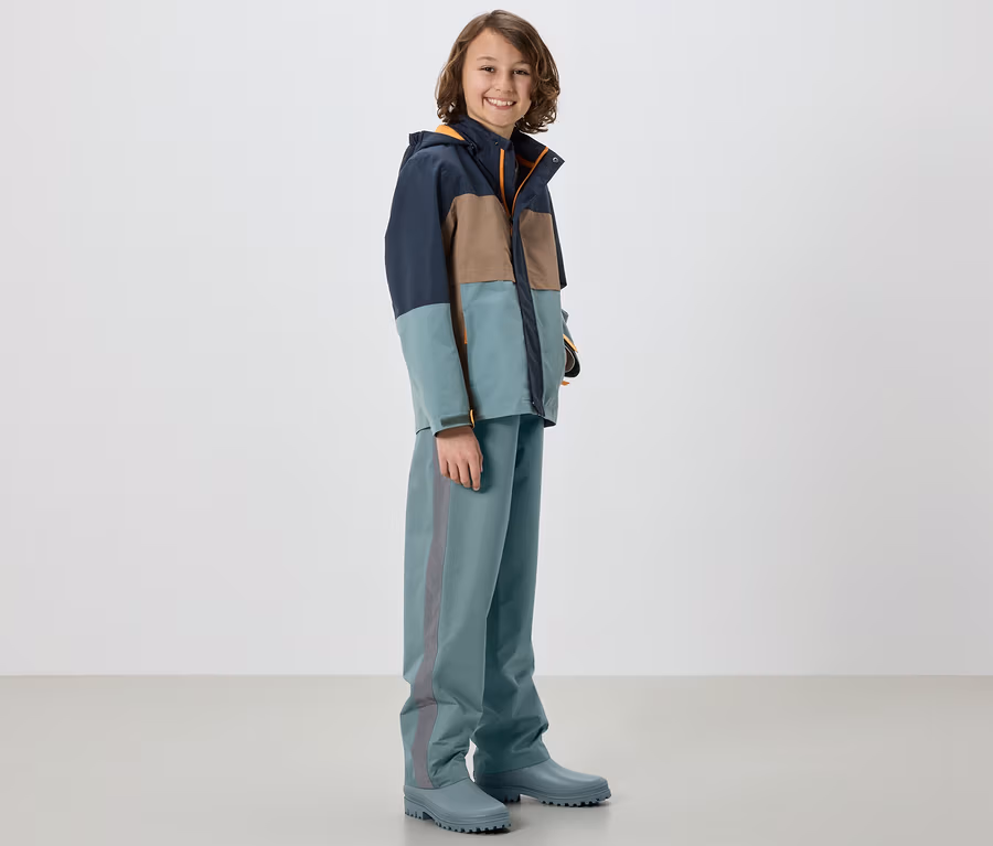 Spodnie przeciwdeszczowe, szałwiowe