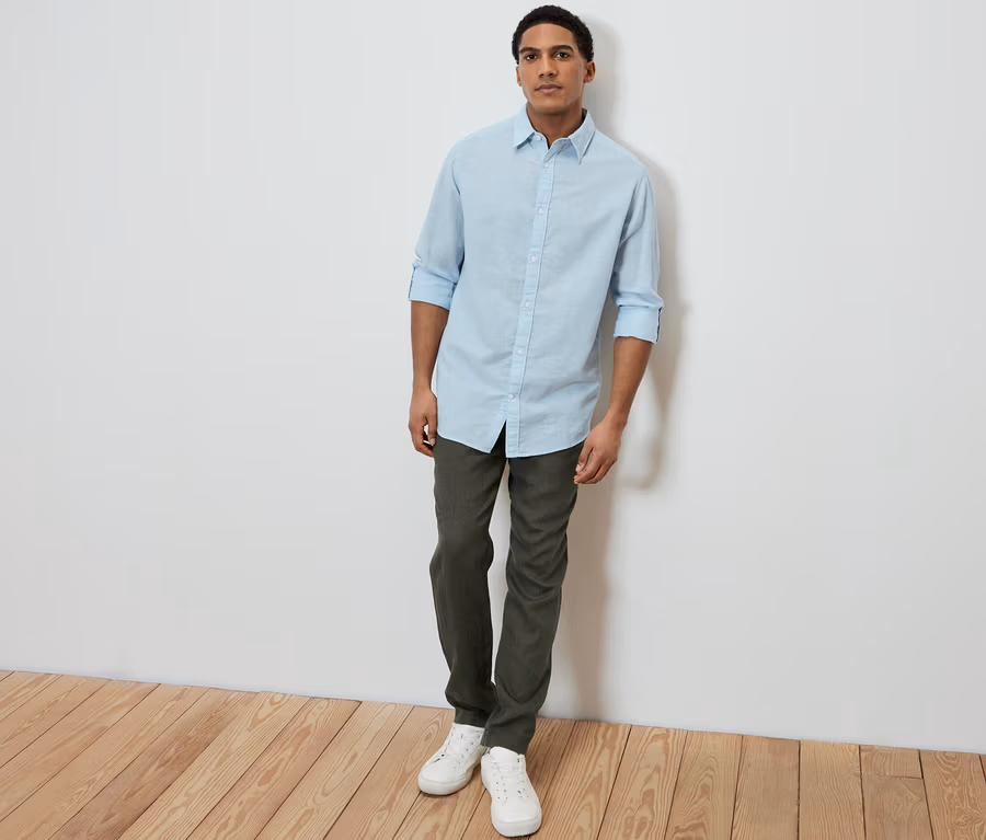 Koszula z lnem, jasnoniebieska