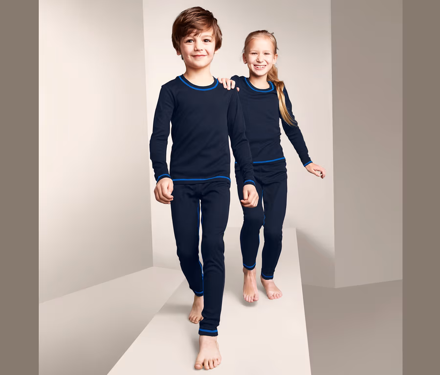 - Wygodna, dziecięca bielizna do jazdy na nartach i innych sportów zimowych - zestaw składający się z koszulki z długimi rękawami i długimi kalesonami