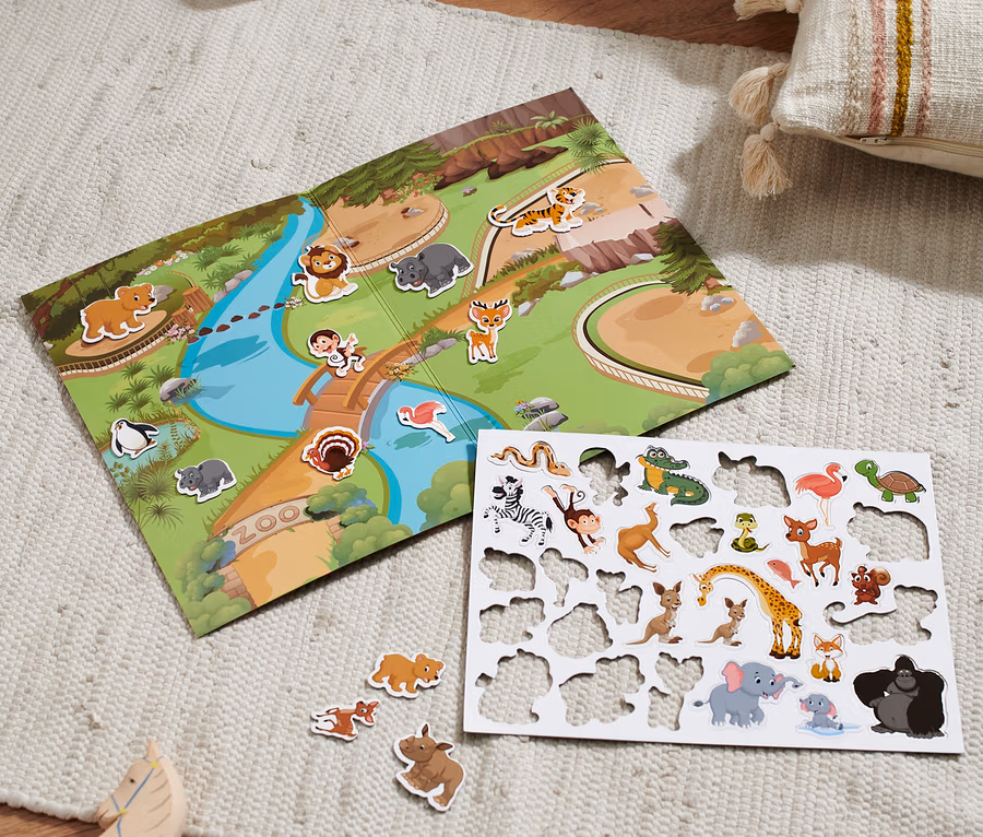 - Magnetyczny widok zoo i 31 magnesów ze zwierzętami do zabawy i wymyślania własnych historii