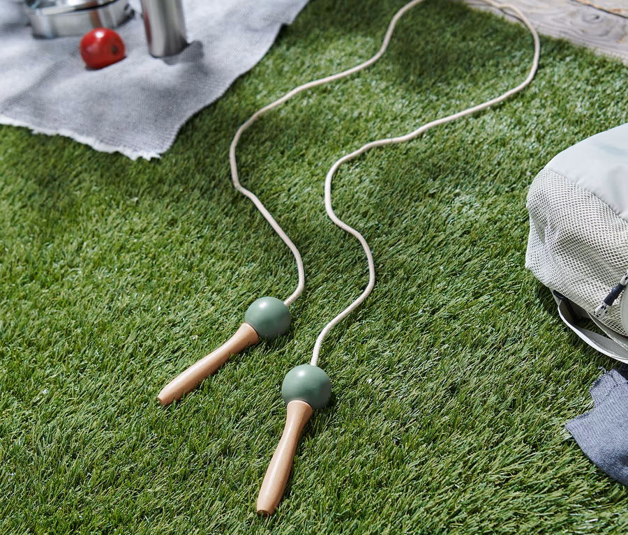 - Uchwyty: drewno w naturalnym kolorze z zielonymi kulkami