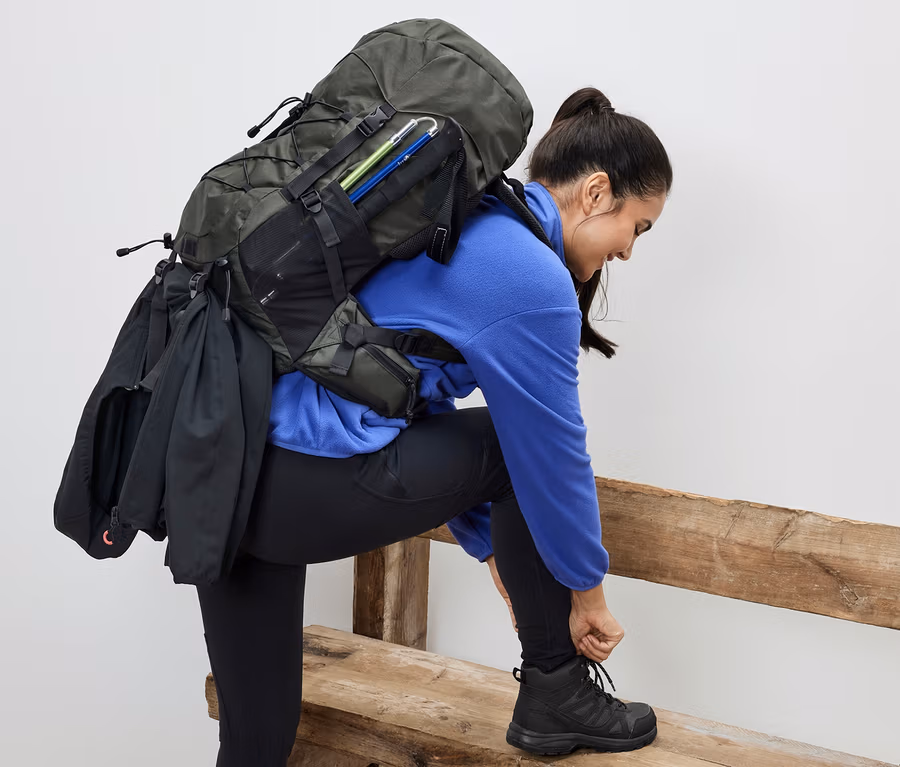 - Dwa regulowane paski na spodzie, do przymocowania śpiwora, maty itp.