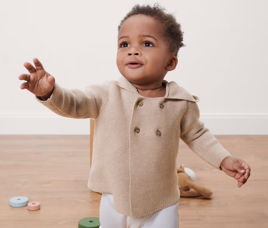 Dzianinowy sweter niemowlęcy, beżowy melanż