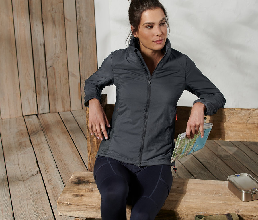 - Bluza hybrydowa: ocieplenie w obszarze klatki piersiowej, pleców i rękawów, po bokach i pod pachami elastyczne wstawki