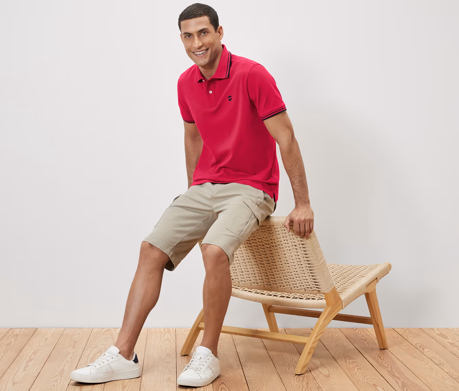 Koszulka polo o splocie piqué, różowa