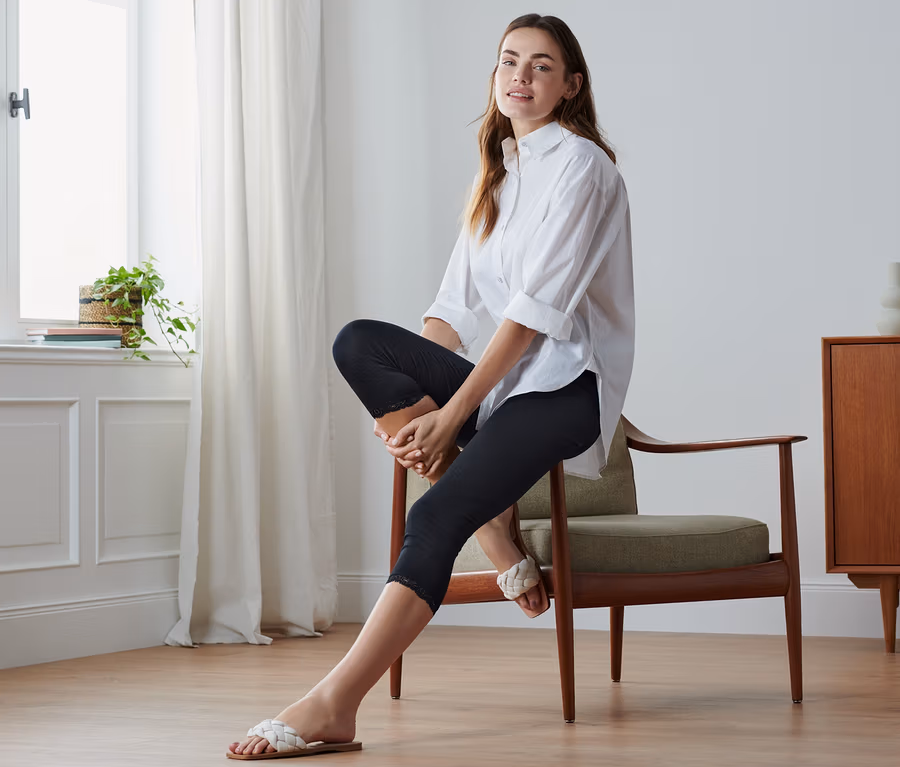 Legginsy o długości 3/4 z koronkowym zakończeniem, czarne