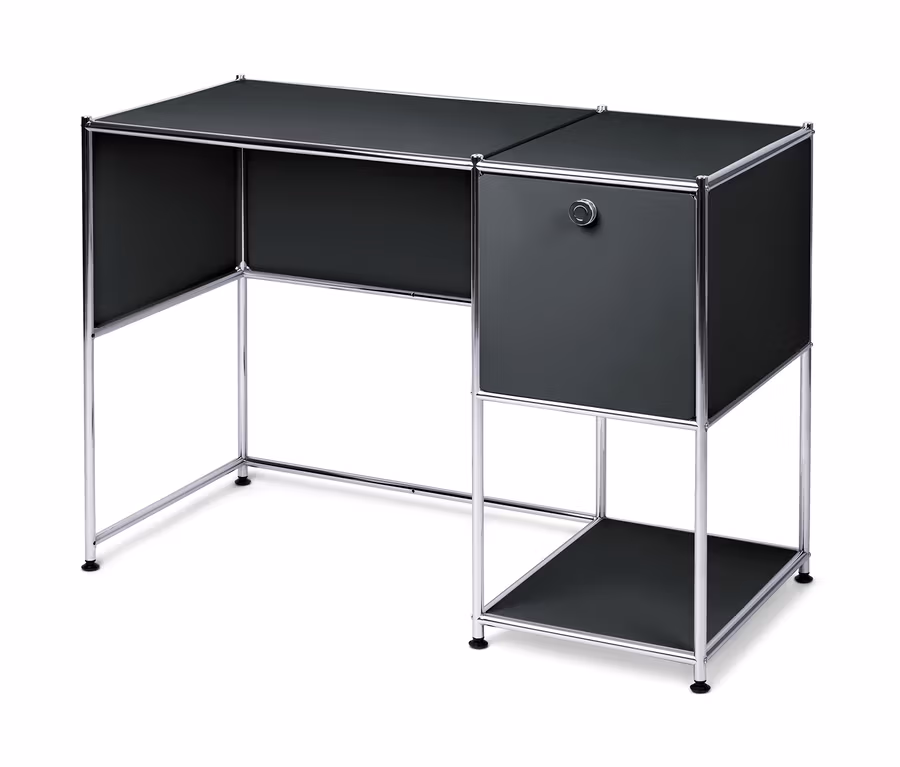 - Biurko na chromowanej, metalowej konstrukcji i z chromowaną gałką