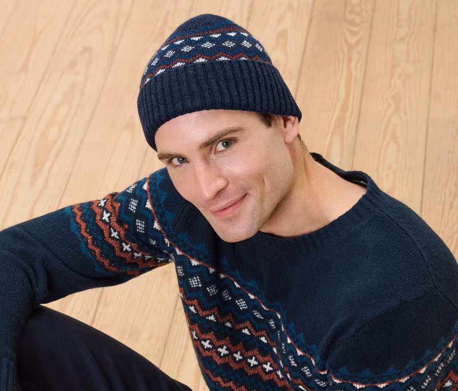 - Granatowa z niebiesko-czerwono-kremowym norweskim wzorem