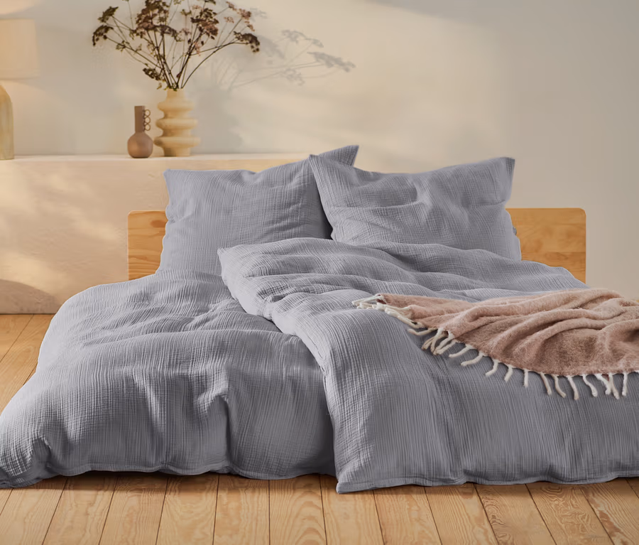 Pościel muślinowa, szara, rozmiar standardowy