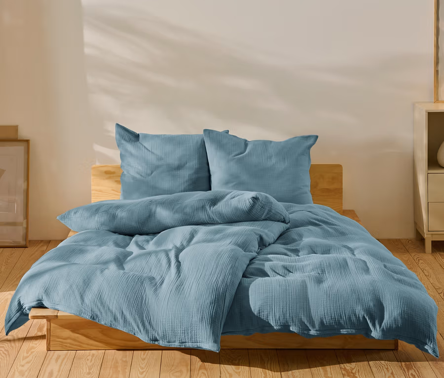 Pościel muślinowa, niebieska, rozmiar standardowy
