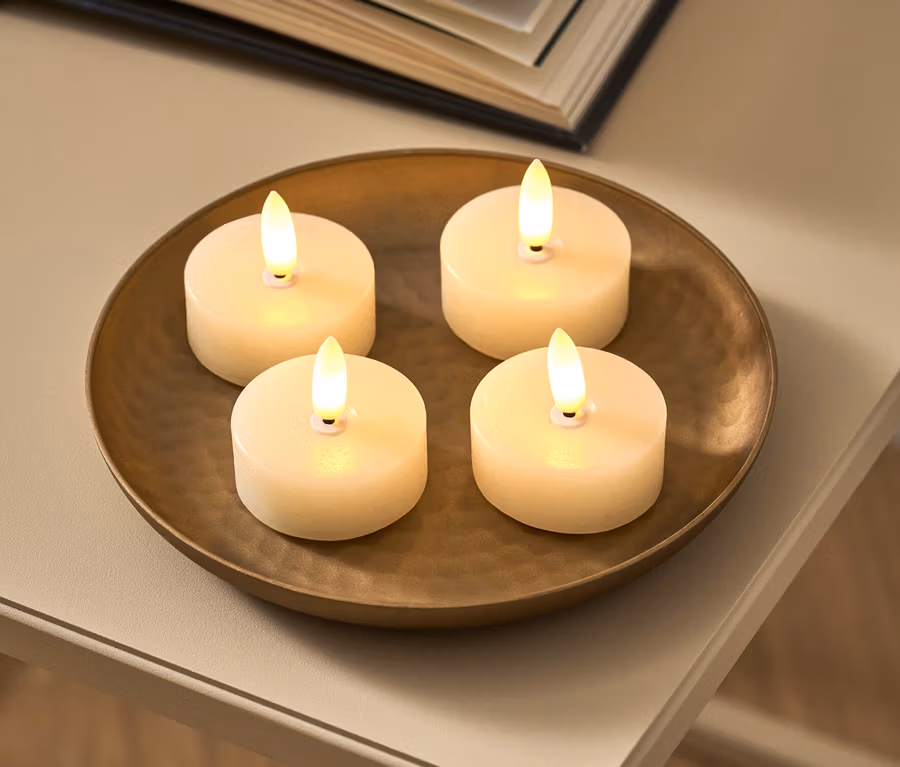 Świeczki typu tealight LED z prawdziwego wosku, kremowe, 4 sztuki