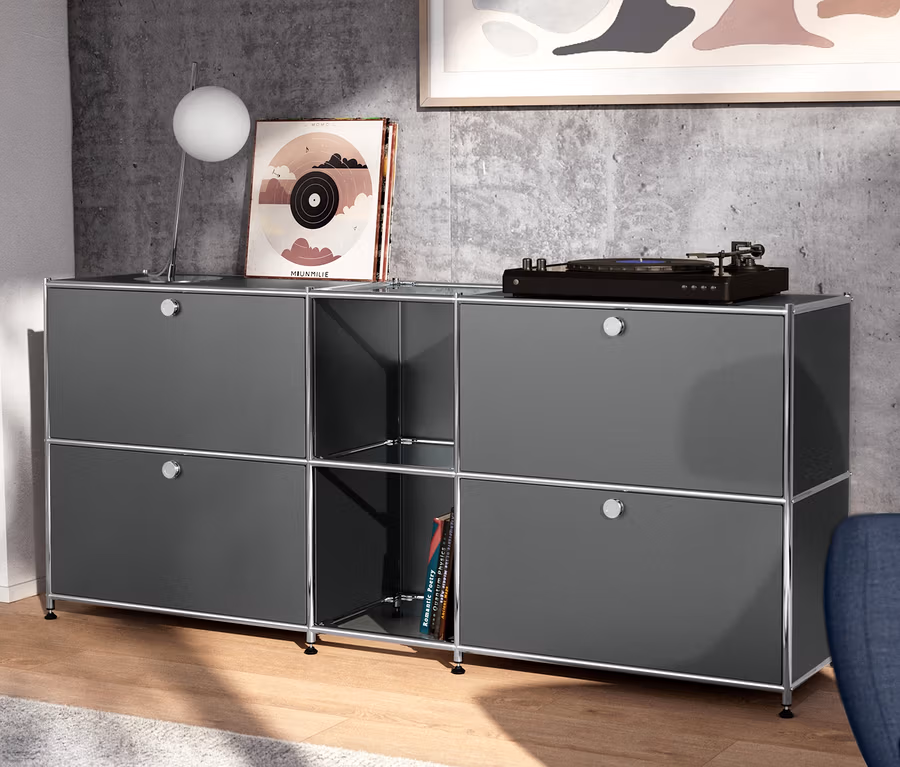 Metalowa szafka typu sideboard »CN3« z 4 klapami, szara