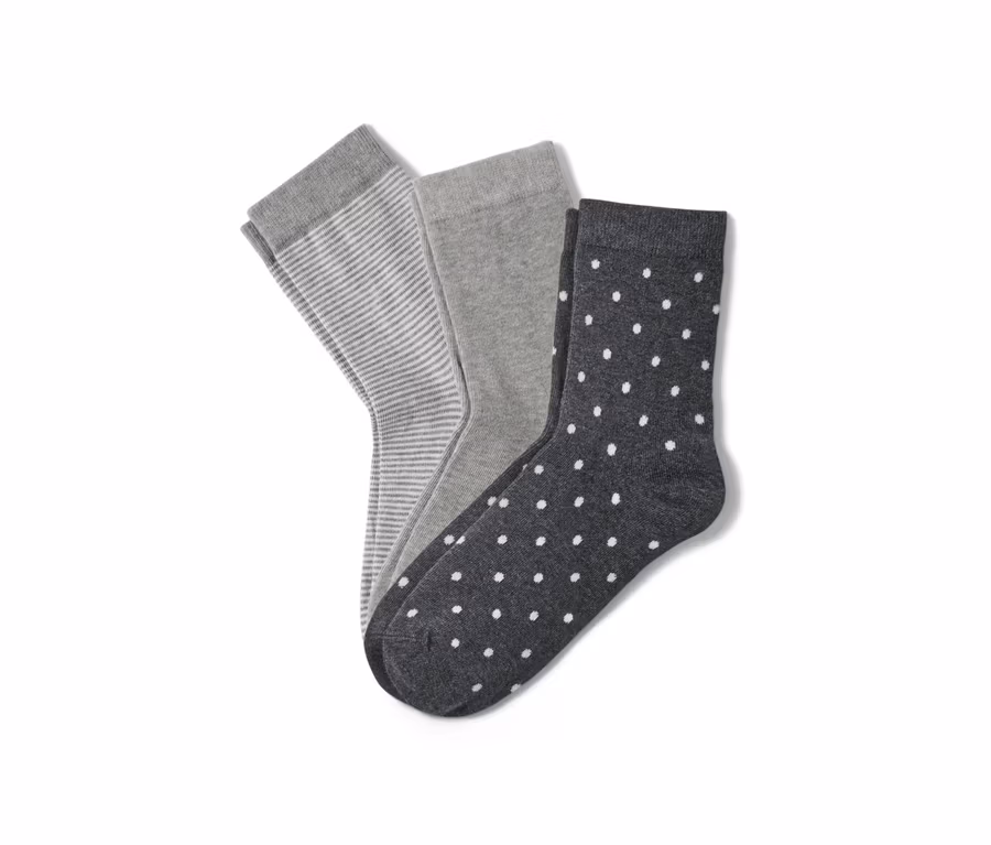 - 1x w szaro-białe paski, 1x szare nakrapiane, 1x ciemnoszare w białe kropki