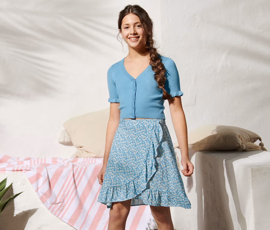- Ta spódnica zawiera włókno z drewna pochodzącego ze zrównoważonej gospodarki leśnej.