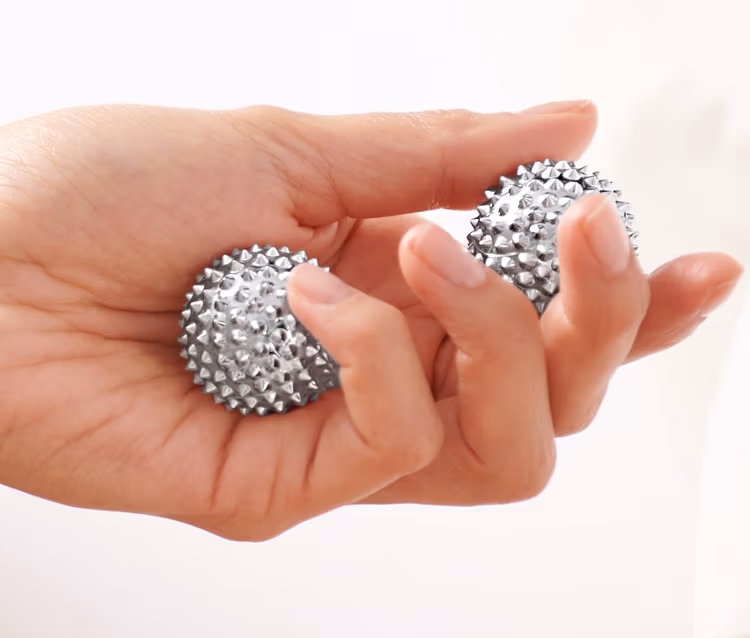 - Sposób użycia kulek Qi Gong: trzymaj 2 kulki w jednej ręce. Obracaj kulki w dłoni tak, jak potrafisz, ale spokojnie! Nie ma znaczenia, czy większy nacisk położysz na palec wskazujący, czy na mały. Najważniejsze, aby kulka nie wypadła z ręki i aby podczas ćwiczenia się odprężyć.
