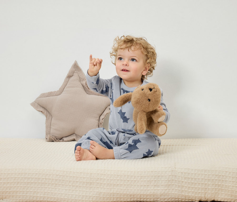 Jasnoniebieski z nadrukiem w gwiazdki na całej powierzchni