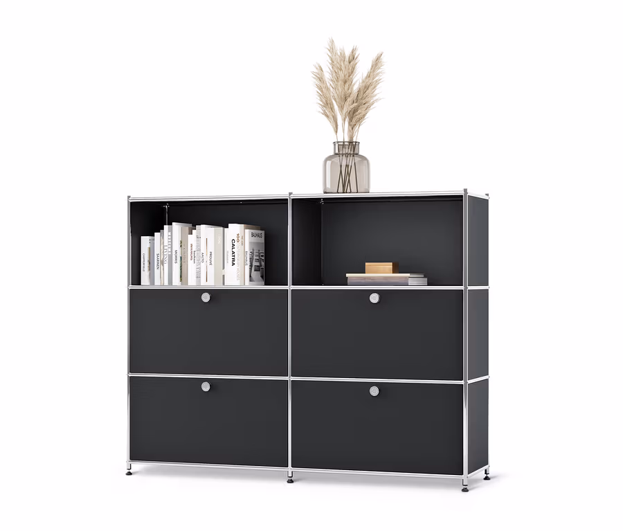Metalowa komoda »CN3« z przestawnymi komorami z klapami, czarna