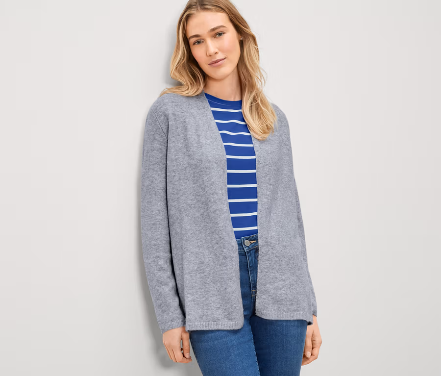• Kardigan z wąskim kołnierzem szalowym