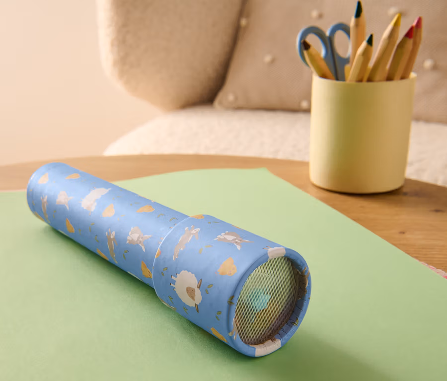 - Nieustannie zmieniające się ornamenty powstają dzięki lusterkom i kolorowym koralikom