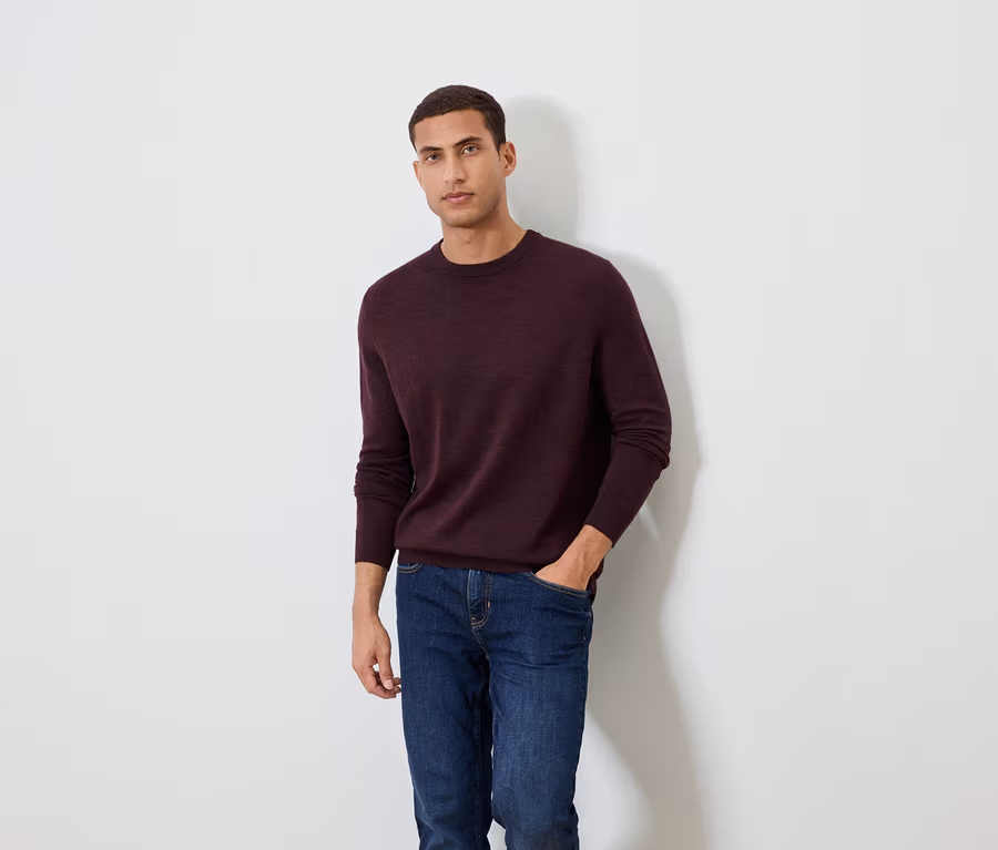 Sweter z wełny merino, bordowy