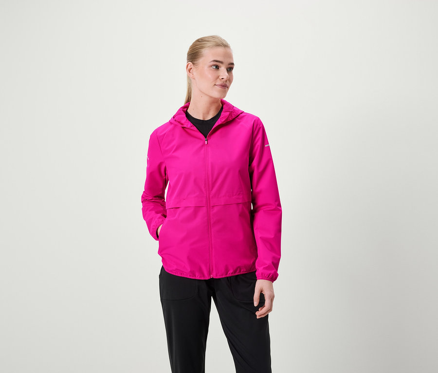 Wiatrochronna kurtka do biegania, neonoworóżowa