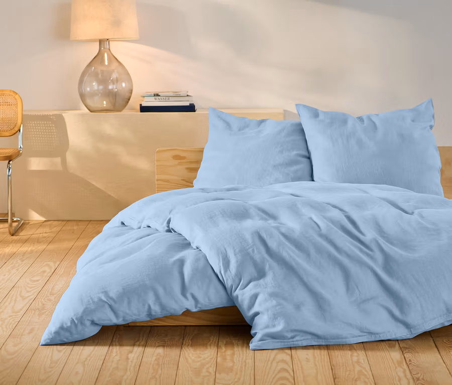 Pościel lniana, rozmiar standardowy, jasnoniebieska