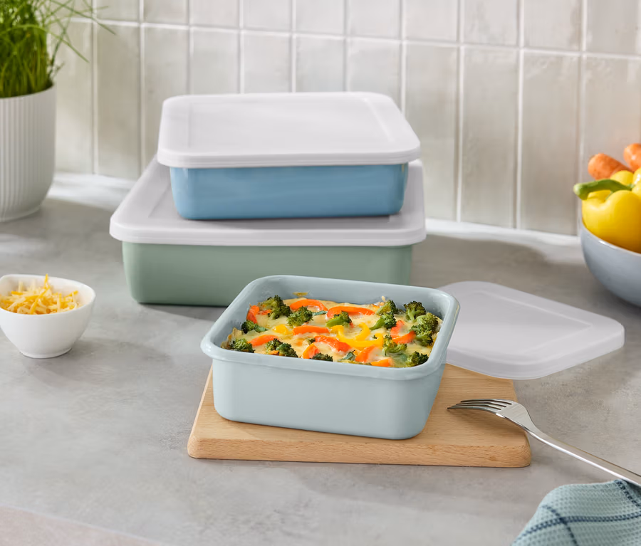 Emaliowane formy do zapiekania z pokrywką, 3 sztuki