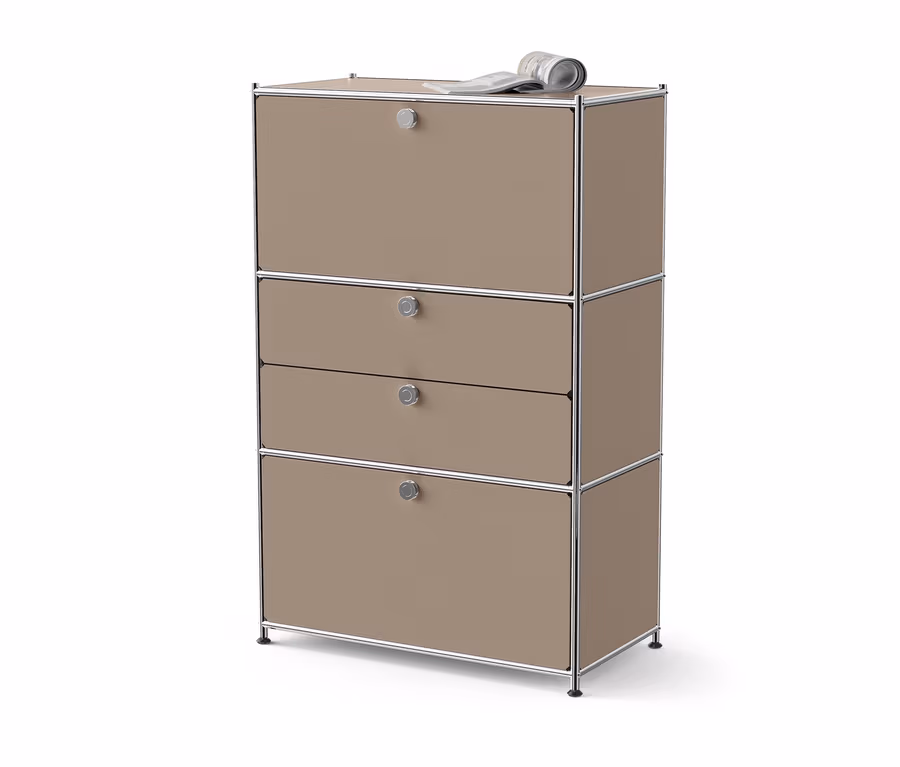 Metalowa komoda „CN3” z 2 klapami i 2 szufladami, szarobrązowa
