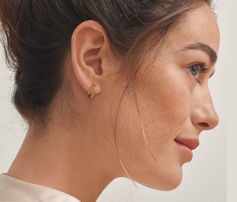 Podwójne kolczyki kreole, srebro próby 925 pozłacane