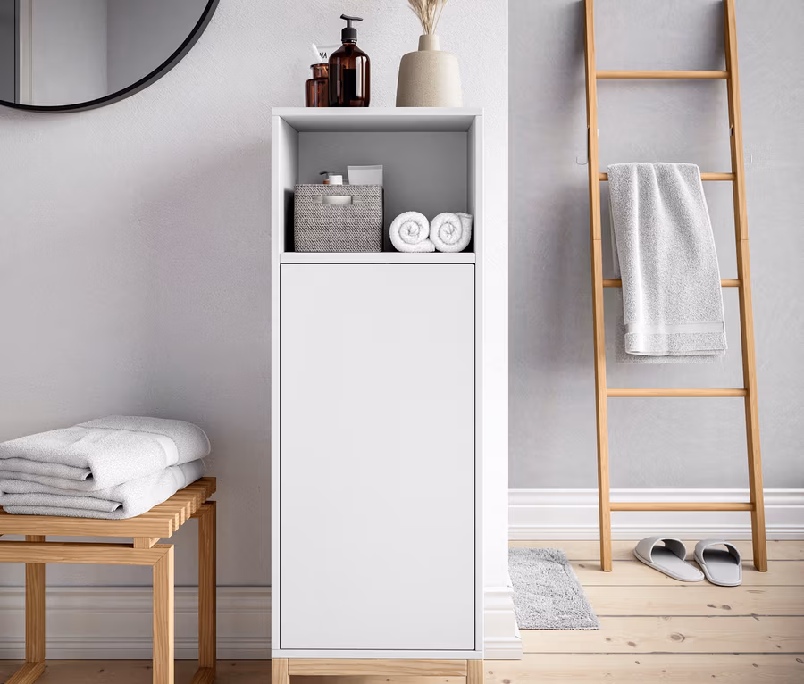 - Z otwartą przegródką i dwiema półkami o regulowanej wysokości w szafce za drzwiczkami